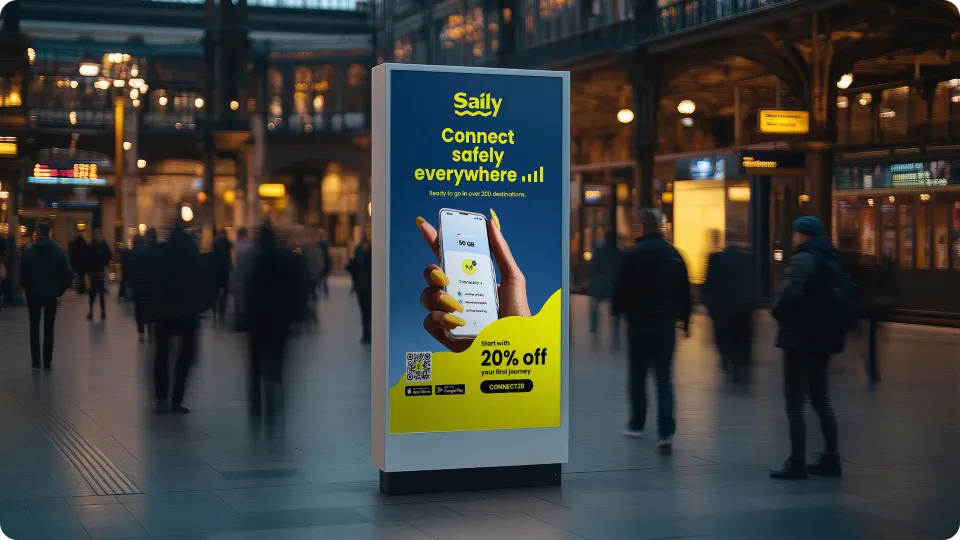 I developed a campaign concept centered on readiness, reframing Saily's technical features into a clear benefit of being connected immediately upon arrival. Using the existing visual identity, I built a scalable key visual system with benefit-led messaging and consistent art direction to improve clarity across marketing channels. To reinforce trust and differentiation, I introduced a modular security layer highlighting Saily's network-level protection through concise sub headlines and badges. First-time user offers were integrated across key touch points to support acquisition while remaining cohesive within the brand system.